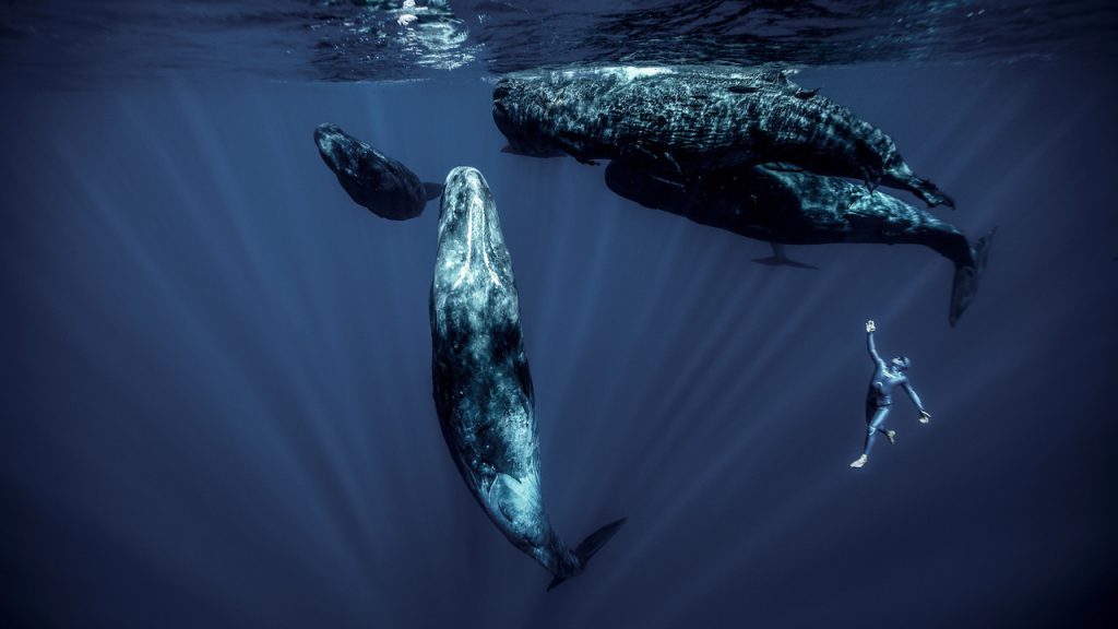 12-минутный фильм Гийома Нери и Джюли Готье: путешествие одним вдохом по миру – от Маврикия до Мексики и Японии, подлёдные кадры, киты, руины.