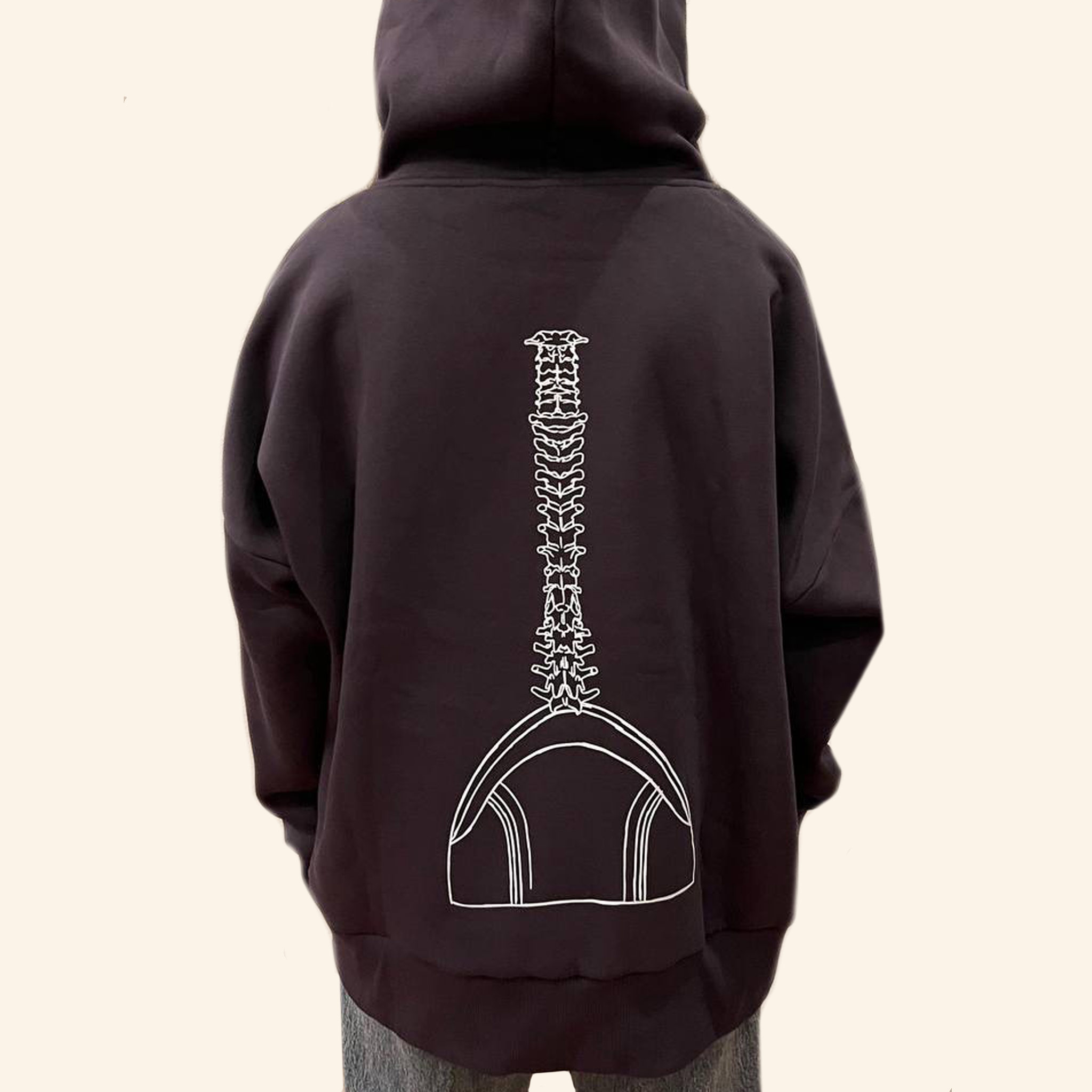 Темно-серый худи — идеально подходит как для выездов, чтобы чувствовать себя уютно, так и для повседневной жизни. На спине вы найдете рисунок уже полюбившегося позвоночника с моноластой — твоя спина буквально превращается в символ фридайвинга.
